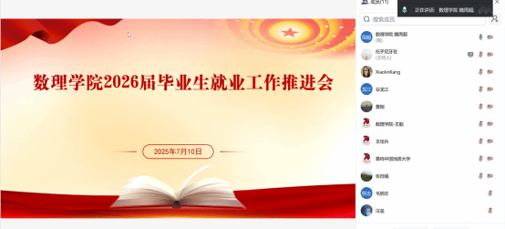 7月10日上午,beat365在线唯一官网 2026 届本科毕业生就业工作推进会通过腾讯会议成功举办。院长魏周超教授、各系主任及毕业班班主任、辅导员出席会议,会议由年级辅导员托乎尼牙孜主持。