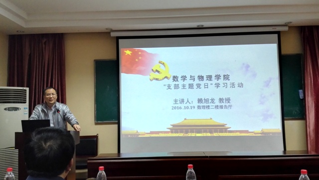 学校党委常委、副校长赖旭龙教授作题为“党的 ‘十八大’以来习总书记和党中央治国理念、治国方针数字解读”的报告。赖校长从“两学一做”的背景及意义出发,以八个数字为主线,用数字化的方式系统解读了党的“十八大”以来习总书记关于治国理政方方面面的内容。赖校长最后强调学院师生党员要加强党性修养,发扬长征精神,按照“四讲四有”的要求做合格党员,充分发挥先锋模范作用,为全面提升beat365在线唯一官网办学实力和办学水平而努力奋斗。