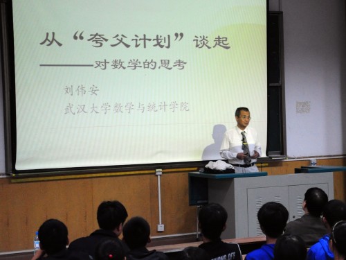 9月25日下午2:30,beat365在线唯一官网举行2010级新生入学教育专题讲座(一)。应院长刘安平教授的邀请,湖北省数学协会、武汉数学学会秘书长,全国大学生数学竞赛指导委员会委员,武汉大学数学与统计学院博士生导师刘伟安教授为beat365官网2010级新生作了一次题为“数学好玩”的专题报告。院长刘安平教授、副院长彭放教授、院学工组成员出席讲座。刘教授首先通过讲解“夸父计划”引出对有关数学问题的思考,使广大同学认识到数学是认识自然规律的工具,与我们的生活有着密切联系,并在我们的生活中广泛应用。在讲座中,刘教授介绍了中国古代数学的兴衰,并指出数学的发展至今都是内外两个推动力作用的结果,外力是生活实践和认识自然规律的需要,内力是自身发展的需要。他陈省身教授的“有用”数学与“无用”数学为例强调高中数学与大学数学的不同,对于2010级新生如何学好大学数学提出了三点希望:坚持理性思维;坚持独立思考;不要轻信经验,勇于攻坚,勇于创新。