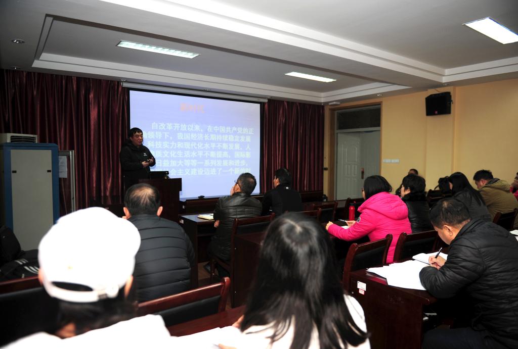 2017年12月29日下午,副校长赖旭龙同志来到beat365在线唯一官网,为beat365在线唯一官网和体育部的教工党员讲党课,宣讲党的十九大精神。