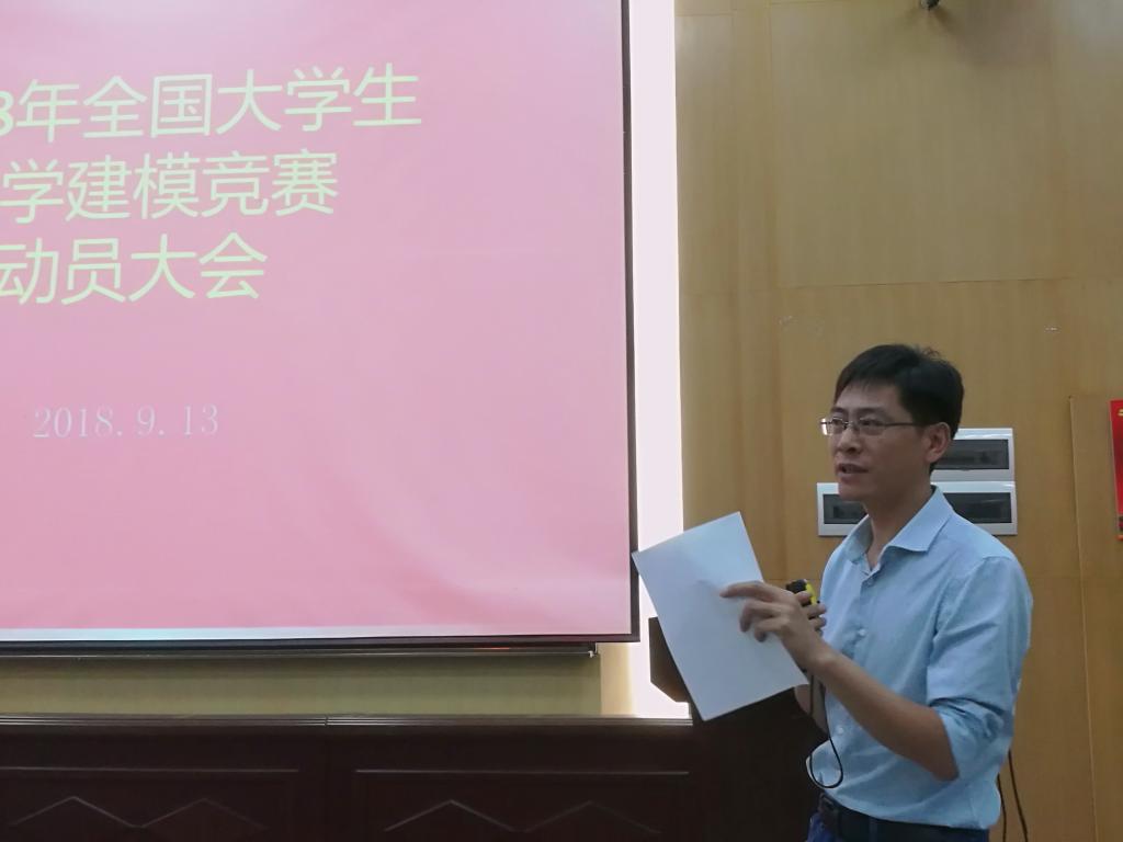 2018年9月13日下午,在教三楼109教室举行了2018年全国大学生数学建模竞赛的动员会。教务处副处长吕占峰以及信工学院、自动化学院、计算机学院等部分参赛学生所在的分管领导应邀出席beat365在线唯一官网院长刘安平、院党委书记吴太山以及全体指导老师参加会议。仪式由beat365在线唯一官网副院长张光勇教授主持。