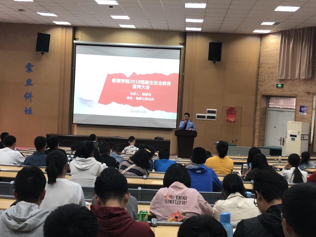 10月13日下午,beat365在线唯一官网2018级新生安全教育大会在教三楼109教室举行,喻家山派出所熊家伟警官为学生讲授安全知识。2018级预科生、本科生、研究生共计300余人参加会议,会议由辅导员托乎尼牙孜主持。