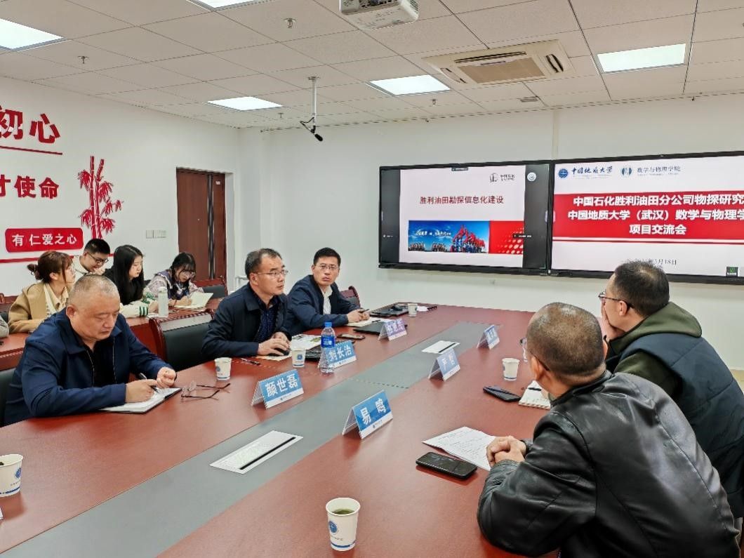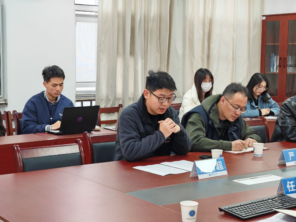 任恩茂就中国石化胜利油田有限公司物探研究院的相关情况进行简要介绍,刘长治就胜利油田勘探信息化应用研究的发展及现状、自研软件研发与信息计算支持工作进展等进行汇报,颜世磊就反演约束模型信息融合应用支持技术研究展开介绍。黄斯怡、曹温馨、陈宇航等研究生根据项目协助思路展开详细汇报,并邀请陈述腾等专家学者进行分析和点评。