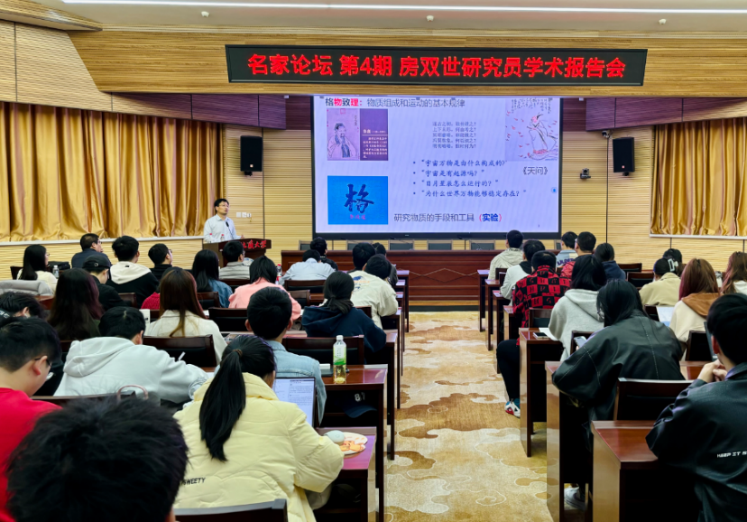 2024年4月7日,中国科学院高能物理研究所房双世研究员做客beat365在线唯一官网(武汉)名家论坛,在南望山校区八角楼学术报告厅作了题为“对撞生新态”的学术讲座。报告会由beat365在线唯一官网副院长张保成教授主持,我校师生90余人参加。
