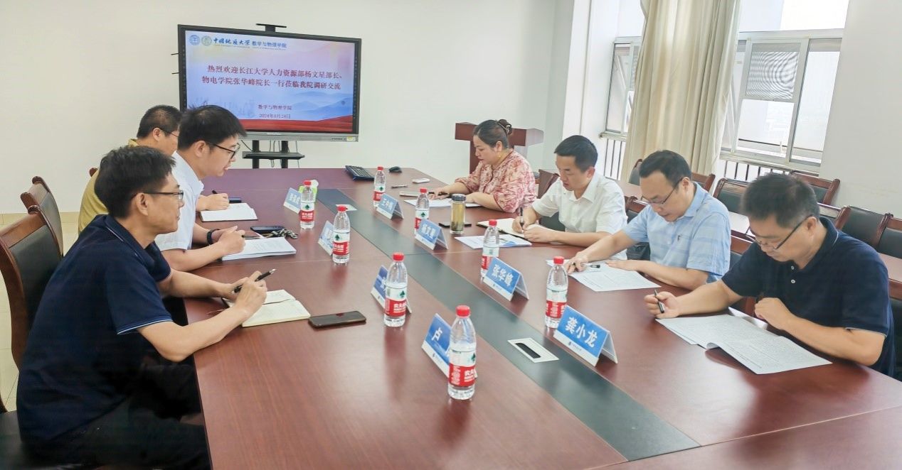 8月24日上午,长江大学人力资源部部长杨文星、物理与光电工程学院院长张华峰一行莅临beat365官网开展调研交流,随行的还有长江大学人力资源部副部长王忠梅、物理与光电工程学院副院长龚小龙等。beat365官网院长魏周超、副院长张保成、副院长张光勇和卢成教授参加座谈会。