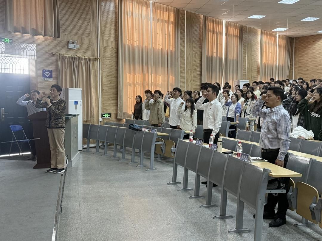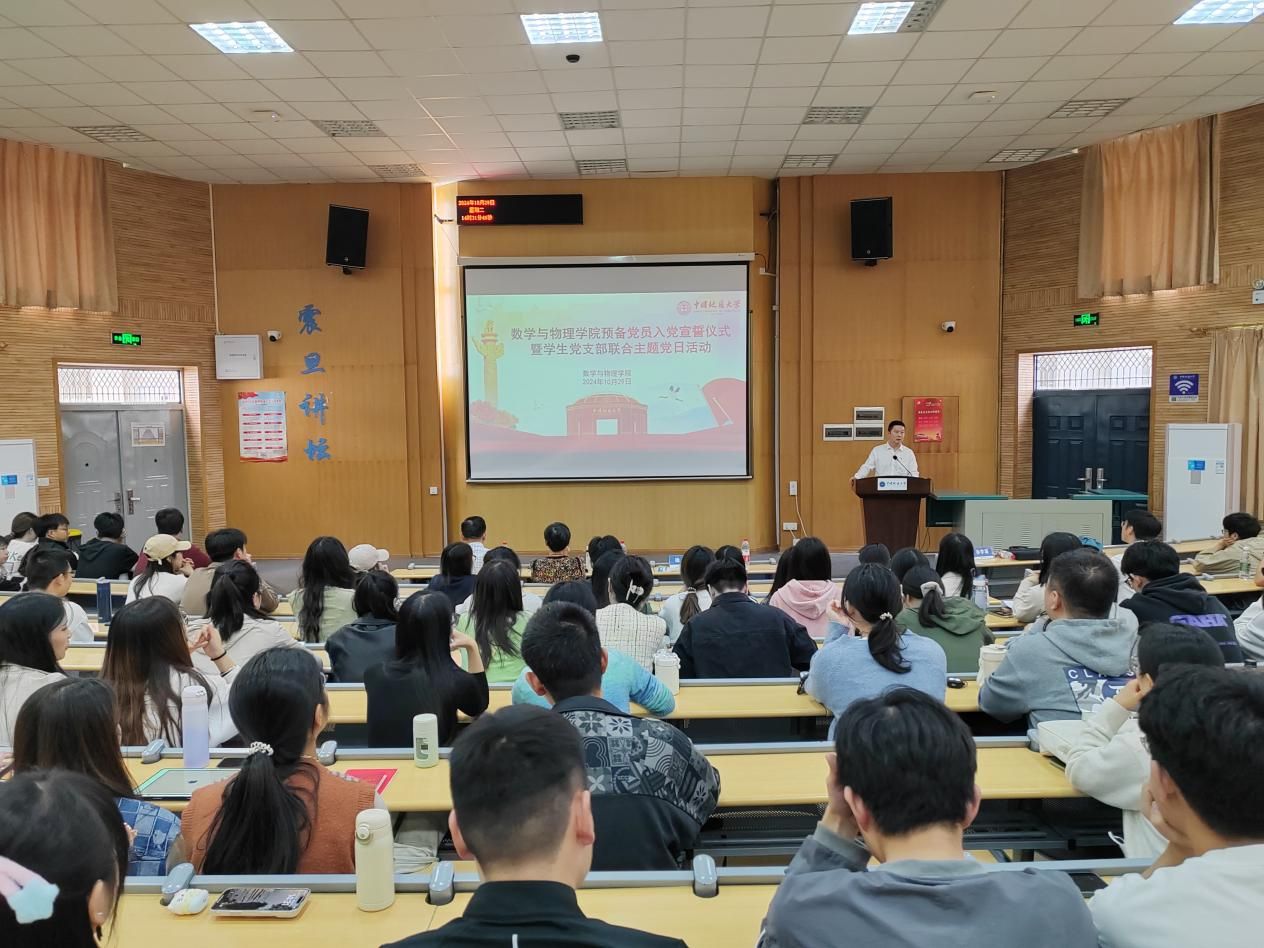 10月29日,beat365在线唯一官网中共预备党员入党宣誓仪式暨学生党支部联合“支部主题党日”活动在教三楼109教室举行,学校党委原副书记朱勤文、学校党委组织部副处级专职组织员徐家忠应邀出席。beat365在线唯一官网全体学生党员、入党积极分子近400人参会。beat365在线唯一官网党委副书记徐超主持会议。