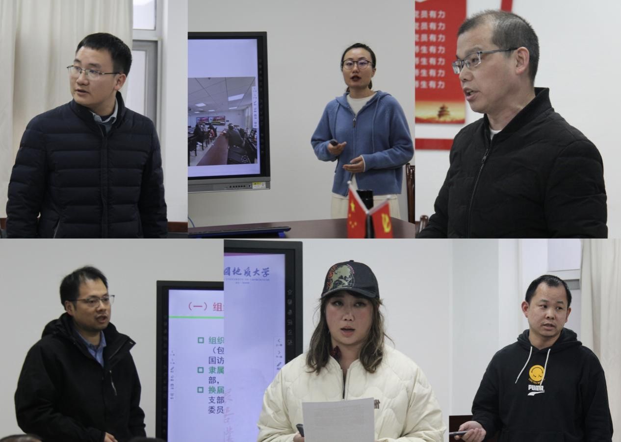 述职评议考核采用现场述职的方式进行。6个教工党支部书记对照党支部建设“七个有力”要求和学校教职工党支部、学生党支部考核评价指标体系(地大党发〔2021〕31号),围绕党纪学习教育主题活动的开展;习近平新时代中国特色社会主义思想、党的二十大和二十届三中全会精神、全国教育大会精神的学习贯彻;学校第十三次党代会的工作部署;党建引领保障学院高质量发展的建设水平的提升;党支部对本科教育教学审核评估工作的推进;民族宗教、意识形态的排查举措;深化平安校园建设、履行全面从严治党第一责任人职责,推进“清廉地大”建设等方面汇报了支部重点工作完成情况、特色活动开展情况、存在的问题分析,以及下一步工作设想。