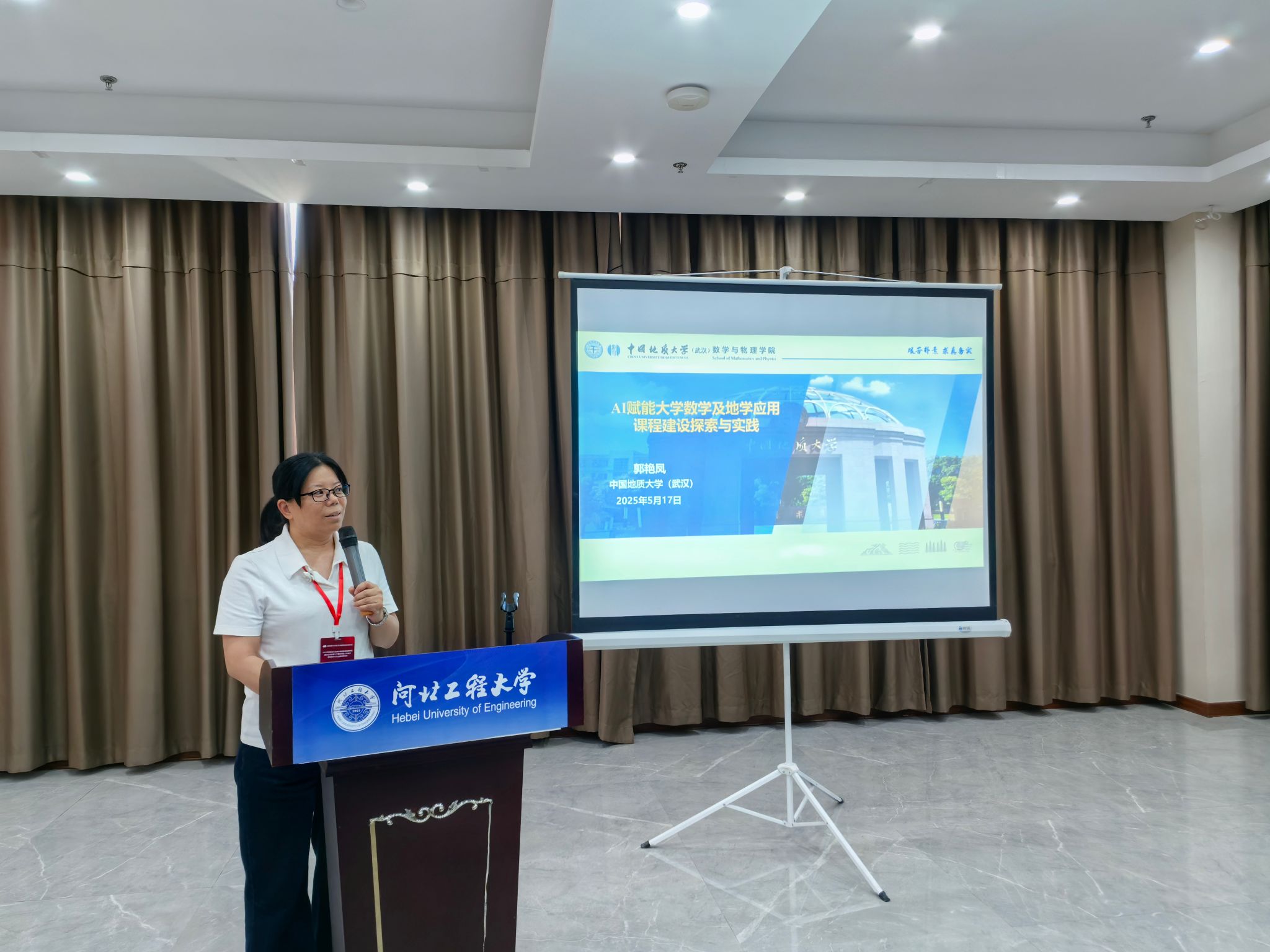 beat365在线唯一官网副院长郭艳凤教授应邀出席授牌仪式,并在大会作了《AI赋能大学数学及地学应用课程建设探索与实践》的主题报告,分享了我校在AI赋能大学数学教育教学中的主要做法和举措,并与参加会议的各高校教师进行了热烈的交流和探讨。