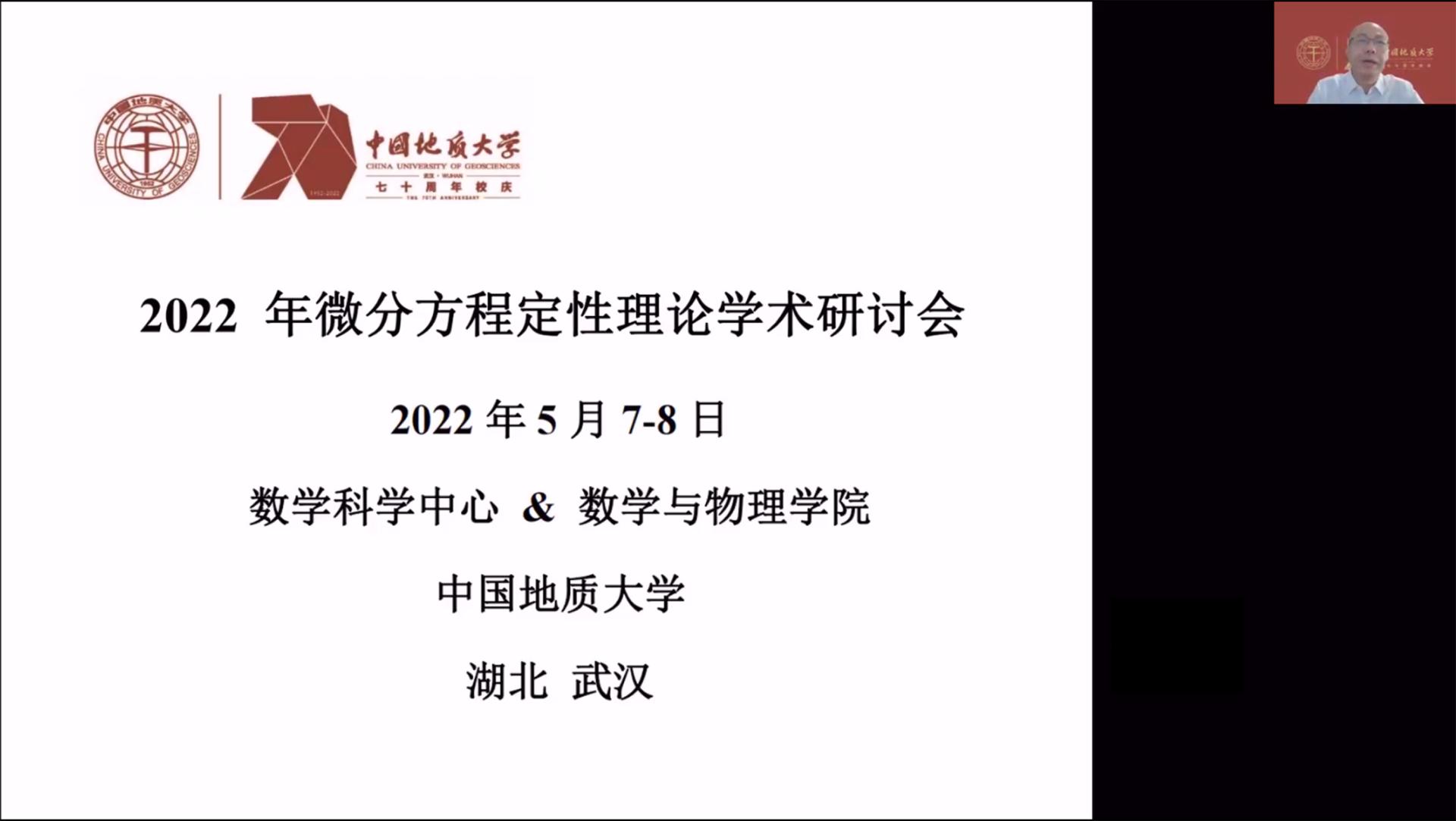 2022年5月7-8日,beat365官网通过腾讯会议平台举办了“微分方程定性理论”网络在线学术会议。此次研讨会是beat365在线唯一官网(武汉)70周年校庆的系列学术活动之一,以更好地交流微分方程定性理论及相关领域的最新研究成果和学术发展动态为主旨,为国内外同行专家之间的学术交流与合作提供平台。开幕式由beat365在线唯一官网院长郭上江教授主持,beat365在线唯一官网(武汉)副校长刘勇胜教授致辞。