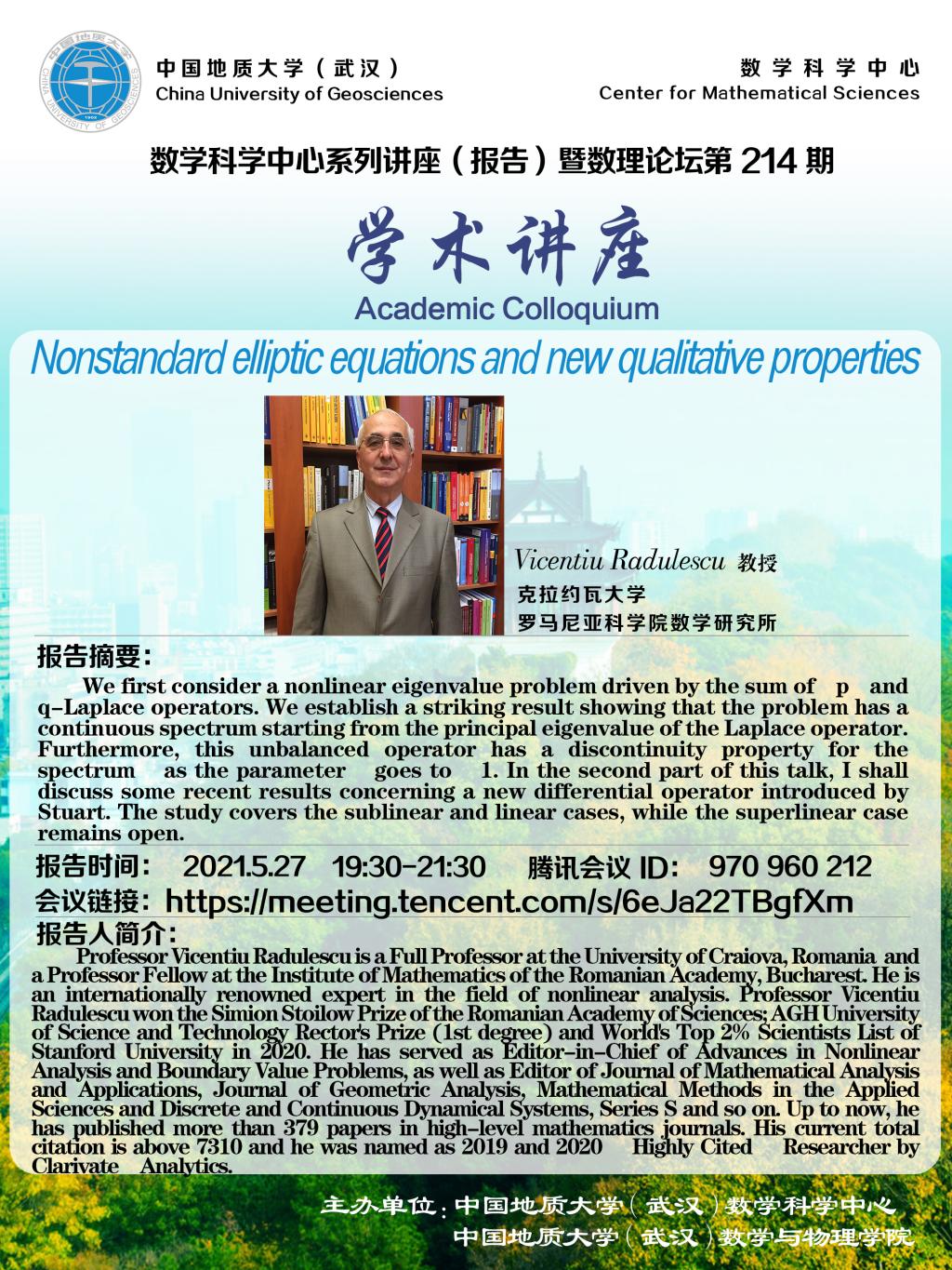 beat365在线唯一官网 数学科学中心 版权所有 地址:湖北省武汉市鲁磨路 388号 邮编:430074 鄂ICP备15021562号-1 鄂公网安备 42011102004169号